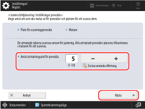 Ställ in antalet kopior av provsidor och tryck sedan på [Nästa].