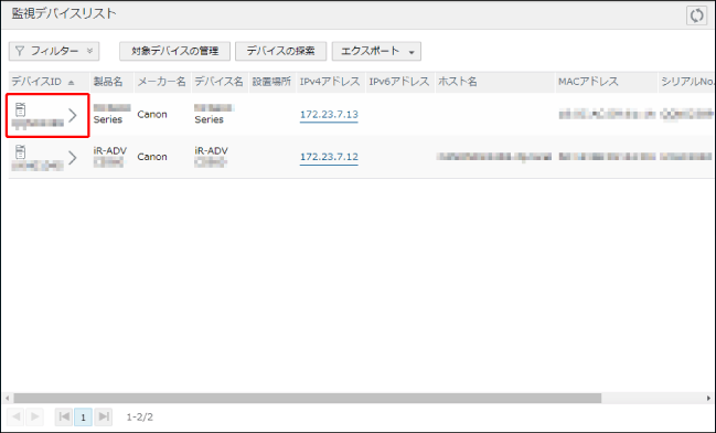 [デバイスID] | 以下の条件をすべて満たした場合は、[デバイスID]を編集できます。 [デバイス管理情報の取得]が[可] [デバイスID]が未設定 本ソフトウェアの管理対象デバイス [デバイスID]が設定されているデバイスが、1000台未満 |