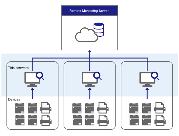 This software retrieves information from the device and sends the retrieved information to the Remote Monitoring Server via HTTPS, regardless of whether the devices for monitoring have the Cloud Connection Agent function.