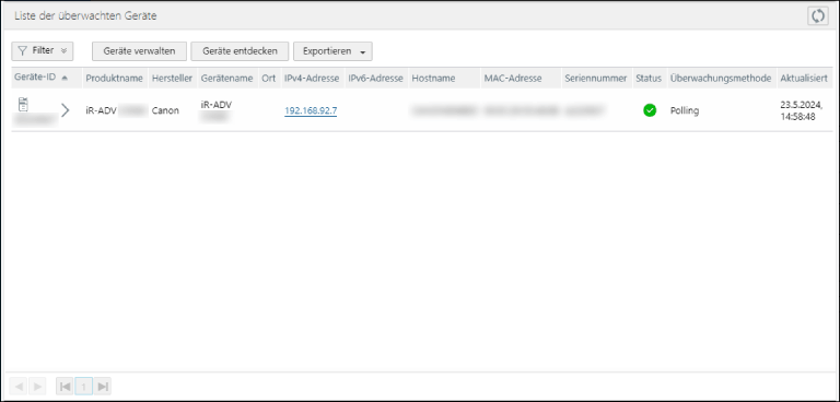 Die Anzahl der Geräte, die überwacht werden können, hängt von dem Protokoll für die Kommunikation mit dem Fernüberwachungsserver und der Überwachungsmethode ab. Näheres dazu finden Sie hier. |