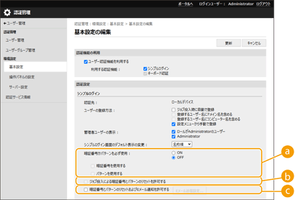 (Ver.2.02~)認証機能の設定でログイン方法にパターンの設定を追加