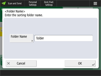 Press <Folder Name>, enter the name of the folder you want to create, and press <OK>
