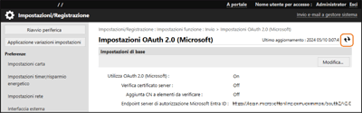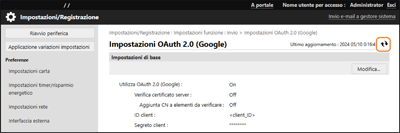 Se si modificano le impostazioni per interrompere l’utilizzo di OAuth 2.0 e poi si desidera riprendere a utilizzare OAuth 2.0, riconfigurare le impostazioni di autenticazione OAuth 2.0 dal passaggio 1.