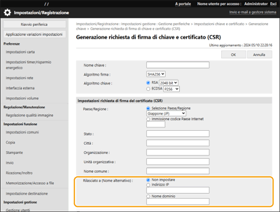 Quando è selezionata l'opzione <RSA>: <Lunghezza chiave (bit)>: <512>, <1024>, <2048>, <4096> | Sì | Sì | Sì | No | - | |