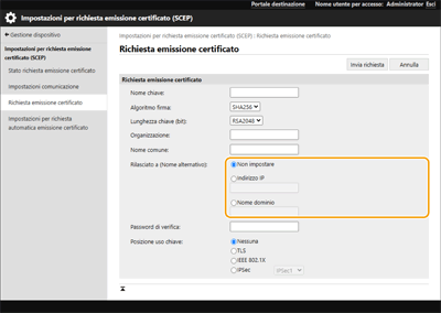 <Impostazioni certificato>