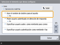 <Usar el nombre de destino para el asunto> | <Sí>, <No> | Sí | No | Sí | C | Información básica de configuración |