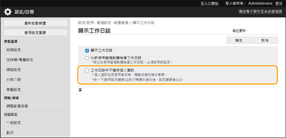 已新增項目,以禁止設定工作日誌顯示時寫入個人資訊。