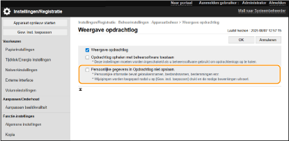Het is nu mogelijk om het schrijven van persoonlijke informatie zoals gebruikersnaam, bestandsnaam en bestemming in het opdrachtenlogboek en het auditlogboek te voorkomen.