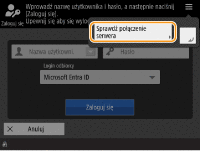 <Sprawdź połączenie serwera> w prawym górnym rogu ekranu logowania.