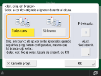 Só é possível especificar destinos do tipo <Correio eletrónico> ou <Ficheiro> quando <Ign. orig. em branco> está programado. O envio não pode ser efetuado se estiver programado um tipo de destino diferente de <Correio eletrónico> ou <Ficheiro>.