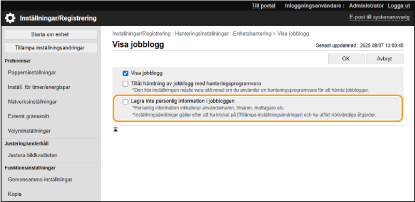 Ett alternativ har lagts till för att förhindra att personuppgifter skrivs när jobbloggvisningen ställs in.