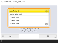 <كل قوائم العناوين>، <قائمة عناوين شخصية>، <قائمة العناوين 1> إلى <قائمة العناوين 10>، <لمسة واحدة>، <قائمة عناوين المسؤول>