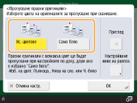 Когато е зададено <E-Mail> или <Файл>, могат да се задават само дестинации от тип <Пропускане празни оригинали>. Изпращането не може да се извърши, ако е зададена дестинация с тип, различен от <E-Mail> или <Файл>.