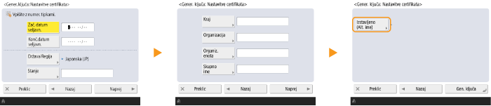 Če je izbrana možnost <RSA>: <Dolžina ključa (bit)>: <512>, <1024>, <2048>, <4096>