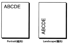 方向是指列印方向。印表機功能可以用兩種不同的紙張方向列印:portrait(縱向)和landscape(橫向)。以縱向列印時,列印的文字與紙張的寬(短邊)平行;以橫向列印時,列印的文字與紙張的長(長邊)平行。