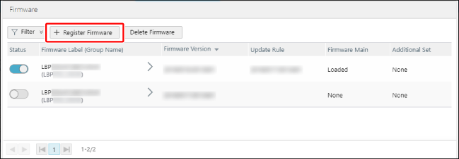 To update printer firmware by executing a task to update firmware, it is necessary to set the status of the firmware registered in this software to [Released] (