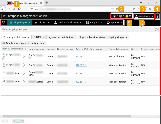 Si un état ne s’est pas produit dans les périphériqus cibles à gérer, l'icône correspondant à cet état n'est pas affichée. |