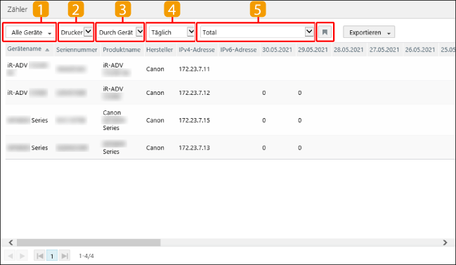 ![]() | Wählen Sie den Gerätetyp für die Gesamtzählung aus. |