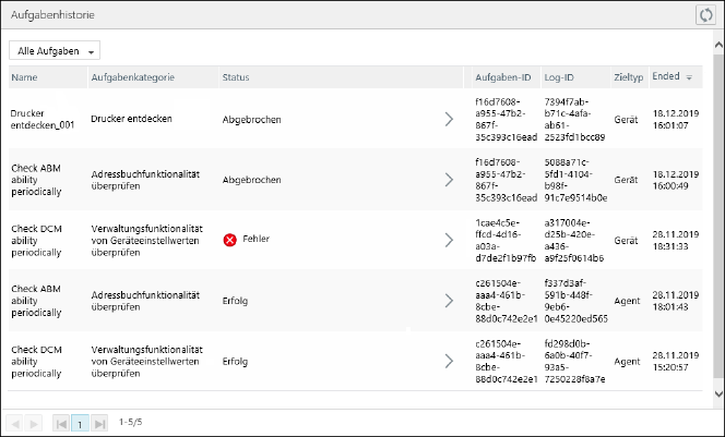 Sie können den Status der Ausführung oder der abgeschlossenen Aufgaben überprüfen, indem Sie das Menü [Aufgaben] > [Historie] auswählen.