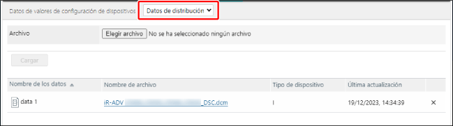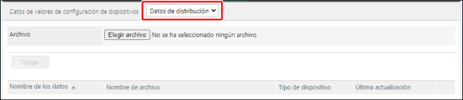 Seleccione [Datos de distribución] en la lista desplegable de la parte superior de la página [Datos de valores de configuración de dispositivos].