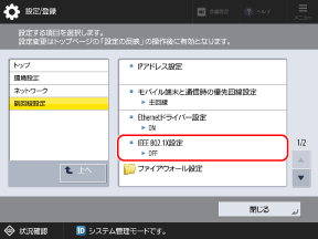 [IEEE 802.1X設定] | [IEEE 802.1Xを使用] | ![]() | C | 設定/登録の基本情報 |