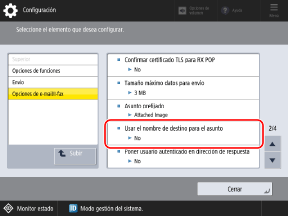 Ahora puede configurar si desea especificar el [Nombre] de un destino registrado en la libreta de direcciones del equipo como asunto al enviar un correo electrónico.