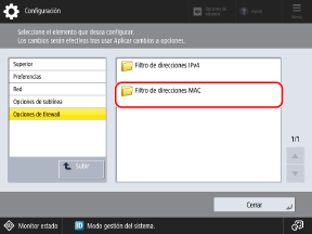 [Filtro de direcciones MAC] [Filtro saliente] [Usar filtro] [Sí], [No] [Directiva prefijada] [Permitir], [Rechazar] [Guardar] [Dirección MAC] [Editar] [Eliminar] [Filtro entrante] [Usar filtro] [Sí], [No] [Directiva prefijada] [Permitir], [Rechazar] [Guardar] [Dirección MAC] [Editar] [Eliminar] |