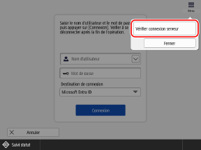 [Vérifier connexion serveur] dans le coin supérieur droit de l'écran de connexion.