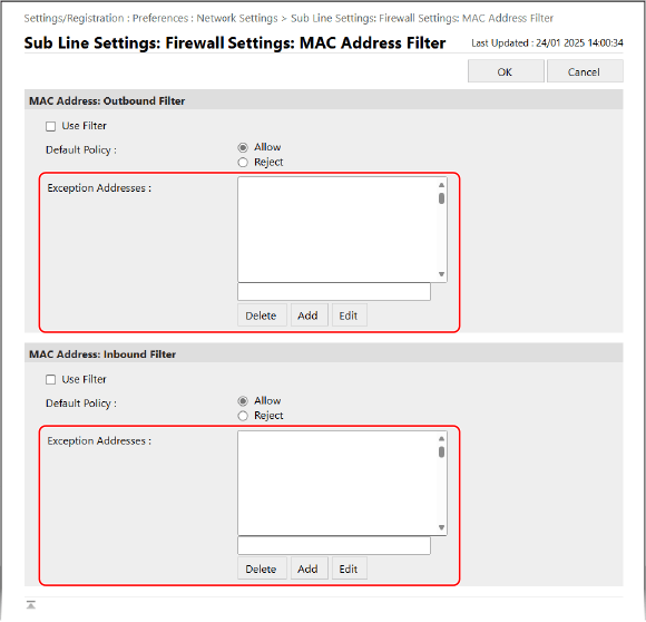Para adicionar um endereço de exceção lista, insira o endereço MAC no campo acima [Add] e clique em [Add].