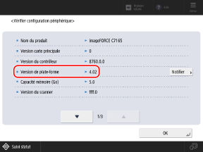 La nouvelle version de la plate-forme n'est pas compatible avec certains modèles. Utilisez la procédure suivante pour vérifier la version de la plate-forme avant de lire ce manuel.