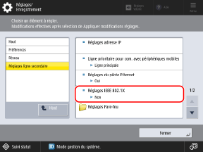 [Réglages IEEE 802.1X] | [Utiliser IEEE 802.1X] | ![]() | C | Informations de base Réglages/Enregistrement |