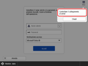 [Controllare il collegamento\nal server] nell'angolo superiore destro della schermata di accesso.