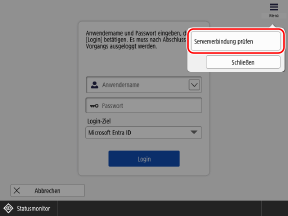 [Serververbindung prüfen] in der oberen rechten Ecke des Anmeldebildschirms überprüfen.