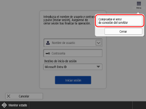 [Compruebe el error\nde conexión del servidor] en la esquina superior derecha de la pantalla de inicio de sesión.