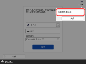 通过键盘验证登录 Microsoft Entra ID 时,现在可以在操作面板的登录屏幕上确认与 Microsoft Entra ID 的连接。您可以从登录屏幕右上角的 [