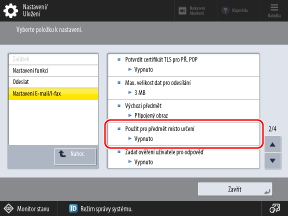 Nyní můžete nastavit, zda zadávat [Název] místa určení uloženého v adresáři přístroje jako předmět při odesílání e-mailu.