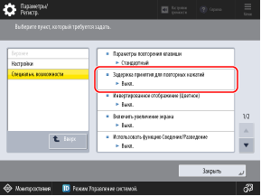 Теперь можно указать период времени, в течение которого аппарат не будет воспринимать второе и последующие нажатия клавиш при повторном непреднамеренном нажатии клавиши на экранной клавиатуре. Настраивайте этот параметр в тех случаях, когда при попытке ввода одного символа вводятся несколько одинаковых.