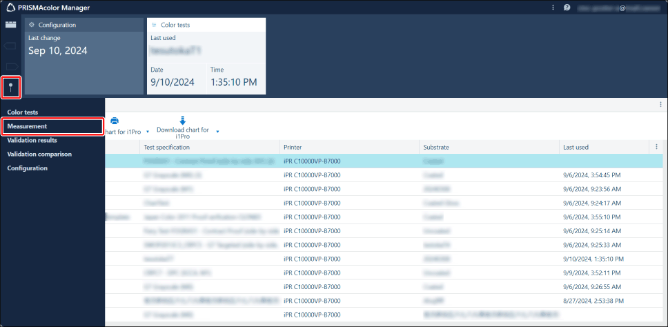 De resultaten van de kleurmeting worden naar PRISMAcolor Manager geüpload. Het testrapportscherm wordt na een tijdje weergegeven.