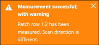 Ga verder bij de volgende rij als er een vinkje wordt weergegeven voor de gemeten rij, en u rechtsonder op het scherm eengroene melding ziet die aangeeft dat de kleurmeting is geslaagd.