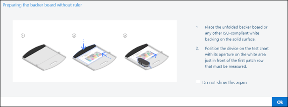 Om en bock visas vid den uppmätta raden och ett grönt fält visas nedtill till höger på skärmen med ett meddelande om att färgmätningen har lyckats fortsätter du med nästa rad.