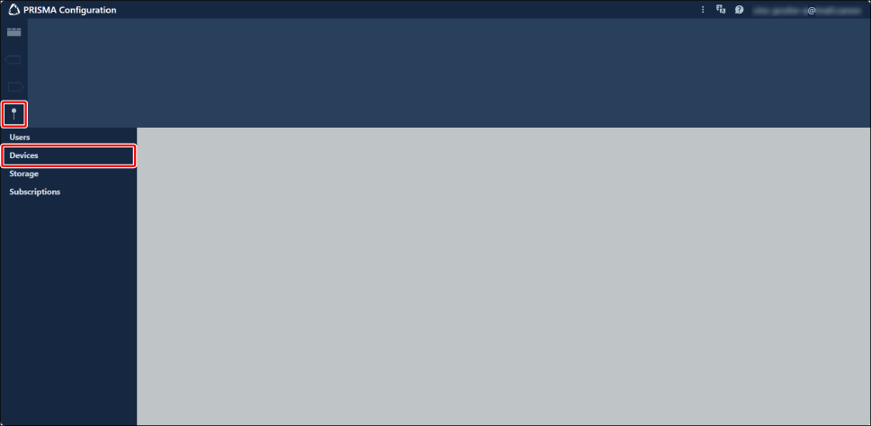 na parte superior esquerda do ecrã para regressar ao Ecrã inicial do PRISMA e, depois, abra a PRISMA Configuration.