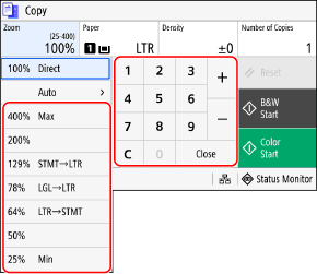 * [Auto Select Paper (LTR/LGL)] is not available when no original is loaded in the feeder or when using [N on 1], [Erase Frame], or [ID Card Copy].