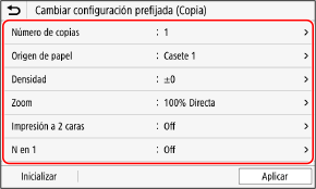 Podrá cambiar las opciones predeterminadas para escaneado, copia y otras funciones a las que se acceda mediante el panel de control.