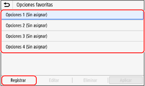 Podrá registrar opciones según la finalidad y las opciones que desee recuperar como "Opciones favoritas" para las funciones de escaneado, fax y copia.