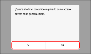 Si selecciona [No], la opción favorita se registra, pero no se añade ningún botón de acceso directo. Puede añadir un botón de acceso directo a la pantalla [Inicio] más adelante.