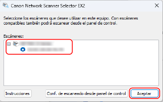 ] (Network Scanner Selector EX2) en el área de notificación de Windows.
