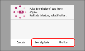 Si desea seguir escaneando originales, colóquelos sobre el cristal de copia y pulse [Leer siguiente].