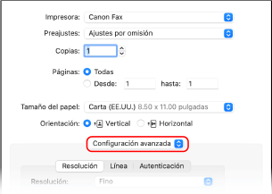 2 | En el menú emergente de opciones de impresión, seleccione [Configuración avanzada]. Si no aparecen las opciones de impresión, haga clic en [Mostrar detalles] en la parte inferior de la pantalla. |