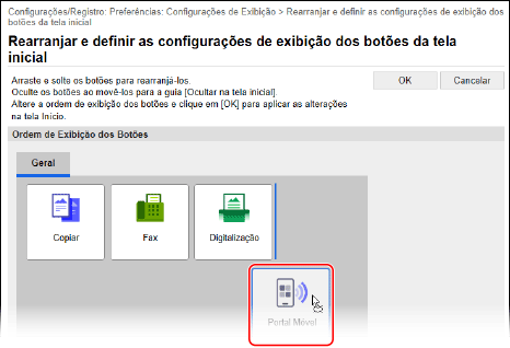 Para alterar a ordem de exibição arrastando o botão, clique em [Editar na Visualização de botão].