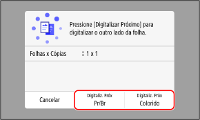 Você pode copiar o verso com um modo de cor diferente (preto e branco ou colorido) do da frente. Para copiar o verso em preto e branco, pressione [Digitaliz. Próx Pr/Br]. Para copiar em cores, pressione [Digitaliz. Próx Colorido].
